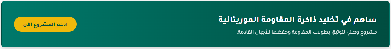 يسر الطاقم الإداري للموقع الألكتروني : ذاكرة المقاومة الموريتانية، المنبثق عن منظمة : المنتدى الموريتاني لحفظ ذاكرة المقاومة، أن يتقدم…